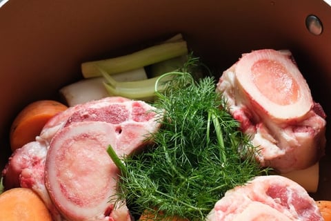 “Durante o cozimento lento, o colágeno contido nos ossos e cartilagens é convertido em gelatina, composta por aminoácidos como glicina, prolina e hidroxiprolina, considerados os principais tijolos da produção endógena de colágeno no corpo”.
